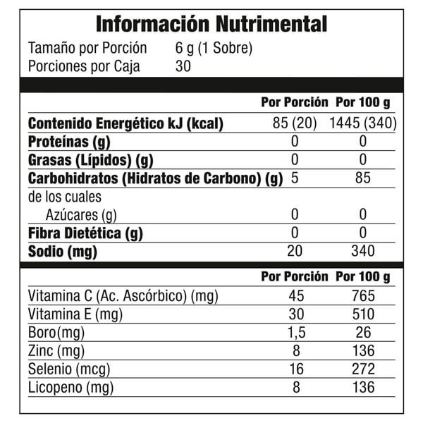 • Antioxidantes Poderosos: Enriquecido con licopeno, arándano y extracto de semilla de uva, promueve la salud cardiovascular, mejora la función cognitiva y favorece el bienestar general.